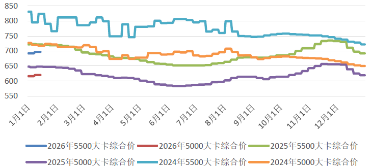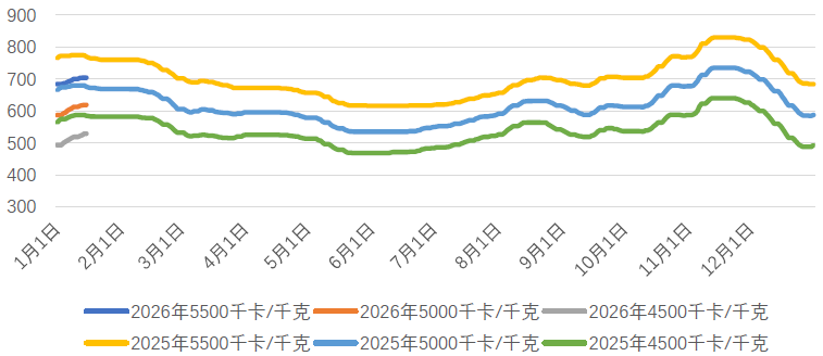 整体来看,国内电煤市场整体供需偏宽松的格局未发生转变。元旦后,环渤海港口库存虽持续去化,但更多是受发运成本倒挂导致调入量偏低,属于被动去库,绝对库存水平仍处高位。市场情绪普遍谨慎,电厂依托充足的库存,采购策略维持以长协煤拉运和进口煤补给为主,对市场煤仅保持刚性采购。尽管坑口价格小幅探涨对港口市场形成一定成本支撑,但需求无实质性增加,煤价缺乏持续反弹的支撑。