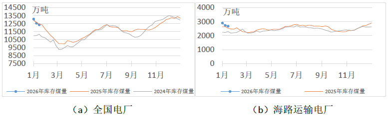 当前,市场的核心博弈仍体现在寒潮带来的日耗阶段性回升与终端高库存下实际采购需求不高之间的拉锯。“四九”寒潮伴随雨雪冰冻天气,在推升供暖需求的同时,也将对煤炭生产及运输造成阶段性干扰,市场存在短期供需收紧预期;但当前终端库存整体充足,补库需求集中释放的可能性不大。在坑口价格回落、发运成本支撑及寒潮预期的共同作用下,港口市场参与主体对价格预期分歧明显,预计市场交易僵持状态延续;此外,当前贸易商采购较为谨慎,雨雪冰冻天气也将导致坑口拉煤车辆减少,若煤矿销售不畅,坑口价格仍将承压。综合判断,由于本轮寒潮持续时间较短,其影响较为有限,难以改变市场供需格局。预计后续坑口价格将延续窄幅震荡,而港口价格在僵持状态下保持弱稳运行。建议:一是在已签订年度中长期合同基础上,重点明确价格机制,推动履约过程监督,以合同刚性约束提升长协兑现率。二是进一步提升“迎峰度冬”精细化保供能力。立足当前库存相对充足实际,加强库存动态管理与结构优化;充分利用铁路运价优惠政策,降低物流成本。同时建立极端天气应急联动机制,提前掌握产地生产、运输线路及天气变化信息,灵活调整采购与接卸节奏,防范雨雪冰冻等天气对供应链的阶段性影响。三是增强进口煤采购的预见性与灵活性。密切关注印尼出口政策实际执行情况及其对供应与价格的影响,结合国内市场供需变化,动态优化进口煤采购策略,有效补充关键时段供应。