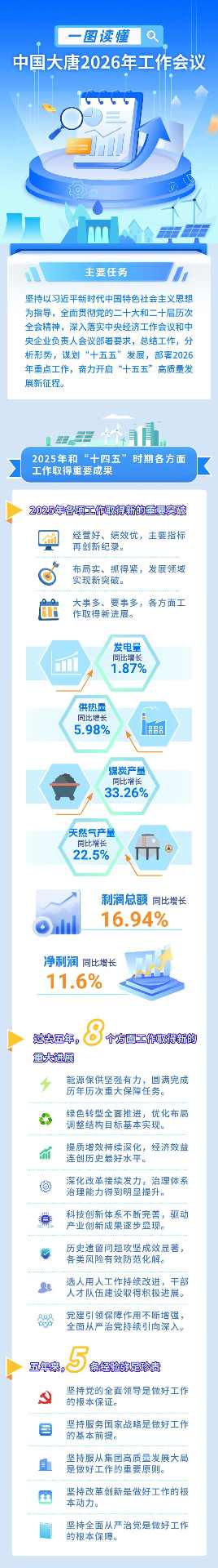 一图读懂|中国大唐2026年工作会议 日期: 2026-02-02 06:47 栏目:发电 浏览: 一图读懂|中国大唐2026年工作会议 原标题:一图读懂|中国大唐2026年工作会议 标签: 上一篇:我国单机容量最大燃气电厂全容量投产 下一篇:内蒙古能源集团1×60万千瓦煤电项目勘察设计服务招标 相关推荐 12地已上调煤电容量电价!他俩,一次到“顶”→ 甘肃能源:预计2025年盈利19.5亿元-21亿元 同比增长18.6%-27.72% 黔源电力:预计2025年净利润同比增长160%-190% 国家电投2×660MW煤电项目脱硫系统(含废水零排放)EPC工程招标