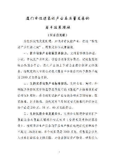 北极星氢能网获悉,12月29日,厦门发改委在网站发布了《厦门市促进氢能产业高质量发展若干政策措施(征求意见稿)》。