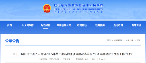 《通知》明确,通过本次优选工作,7个项目中选的建设业主分别负责红河州列入云南省2025年第二批新能源项目建设清单的7个项目的开发直至并网投产的全部资金筹措、项目建设相关的全部投资费用,确保建设开发的新能源项目顺利并网投产,以及项目并网、运营、维护管理等后续相关工作。
