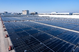 该项目位于烟台蓬莱国际机场航站管理区域内屋顶,总装机容量约10MW,预计年发电量能达到1200万度!是山东首个超大规模、多场景融合的机场光伏项目。