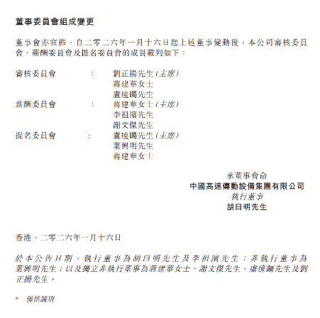 2026年1月16日,风电齿轮箱全球龙头中国企业——中国高速传动设备集团有限公司(南高齿)发生重大高层变动,董事会完成全面重组。