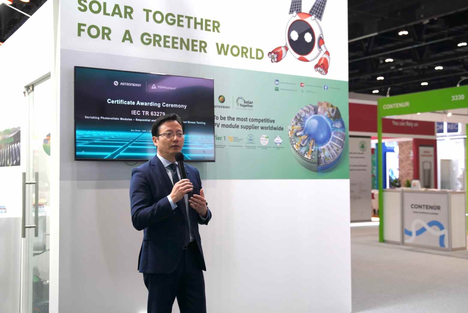 德国莱茵TÜV大中华区太阳能与商业产品服务高级副总裁兼全球电力电子产品服务高级副总裁李卫春,与正泰新能首席市场营销官张炜共同出席仪式,见证了这一里程碑时刻。