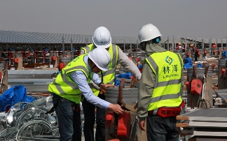 面对潮间带施工困难的情况,林洋新能源建设团队将先筑台、后建站定为首要任务。根据施工规划,两座6400平方米的贝雷结构平台需在1个月内建成,项目组实行设计、施工、监测三班倒机制:技术组白天驻守现场优化钢管桩打入角度,夜晚核算贝雷架承重数据;施工队分成打桩、焊接、防腐三个班组交叉作业,在每日两次潮水退去的间隙抢工。在团队的齐心协作下,直径0.63米的钢管桩群稳稳扎入滩涂,连接平台与海堤的钢栈桥同步贯通,为后续近9万根预制桩、百万块组件的运输安装奠定基础。