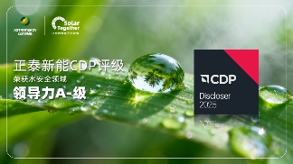 12月10日,国际权威环境信息披露平台CDP公布最新评分,正泰新能取得亮眼成绩:在水安全问卷中,首次参评即获得A-(领导力级别)优异评级,气候问卷获得B(管理级别)评分,展现了企业环境治理能力的持续进步与深入实践。