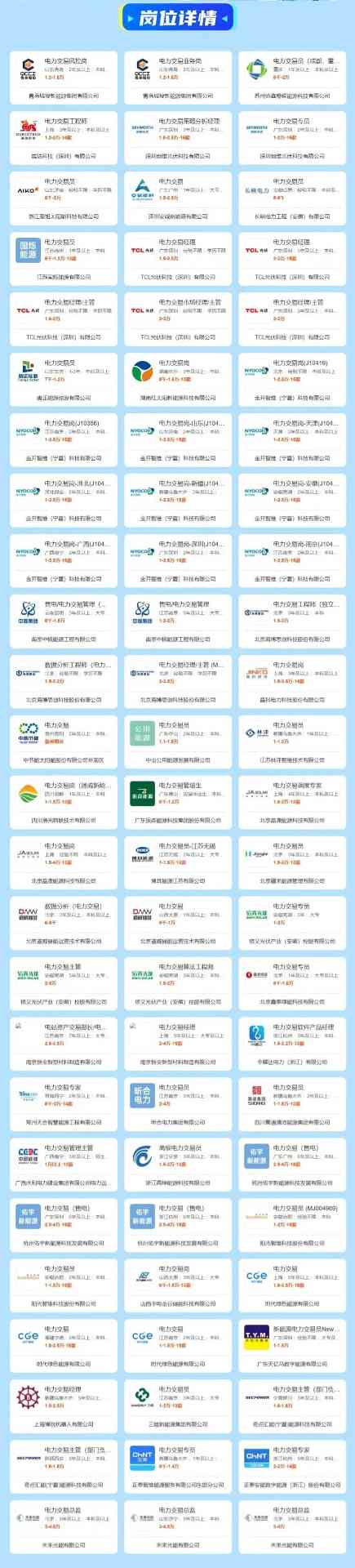 协鑫、晶澳、创维、爱旭、TCL光伏……电力交易岗位招聘专场来了! 日期: 2026-01-30 06:36 栏目:新能源 浏览: 2026年中国储能技术创新应用研讨会 2026/1/28 咨询:153 1319 9667(微信同) 光储企业电力交易岗位专场招募 扫码查看/投递↓ 扫码查看/投递↓ 标签: 上一篇:200万千瓦风电项目相关中标结果公示 下一篇:这家上市公司董事长辞职! 相关推荐 超12亿!华能483MW海上风电项目中标结果定了 全球首张!正泰新能获颁TÜV莱茵IEC TR 63279序列及综合加速应力测试证书 WFES 2026 | 正泰新能ASTRO N7 Pro闪耀阿布扎比 中节能:公司小面积钙钛矿晶硅叠层电池效率已超过30%