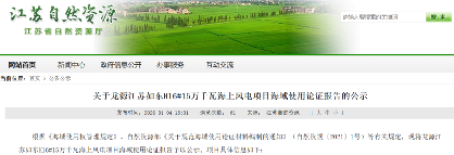 北极星风力发电网获悉,2026年1月4日,江苏省自然资源厅发布《关于龙源江苏如东H16# 15万千瓦海上风电项目海域使用论证报告的公示》。
