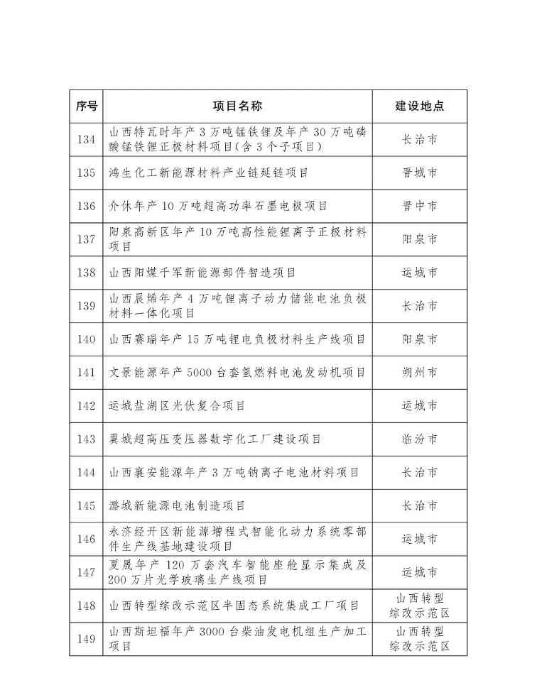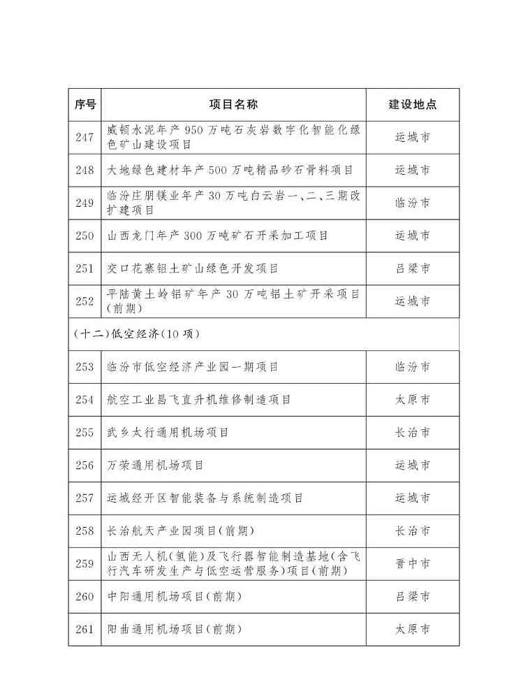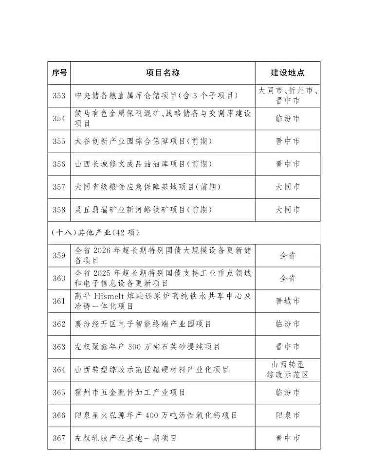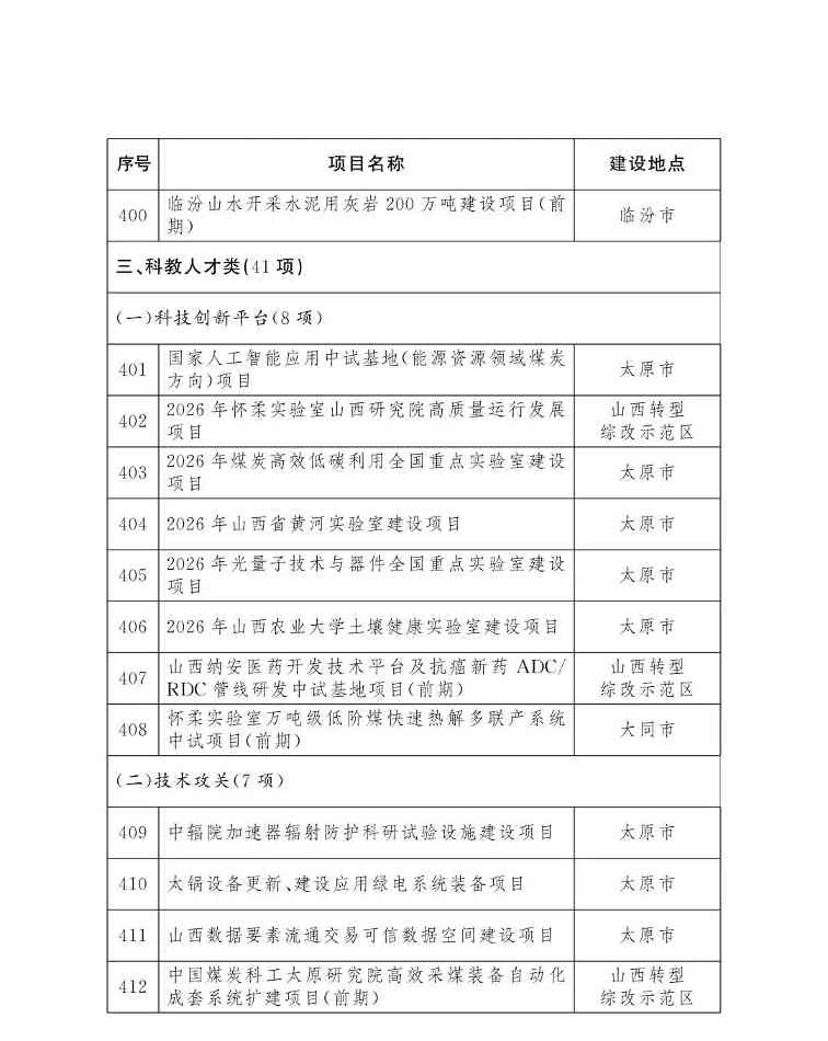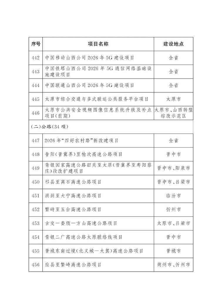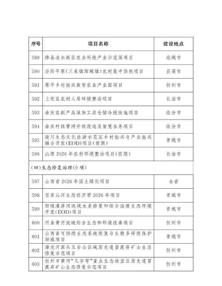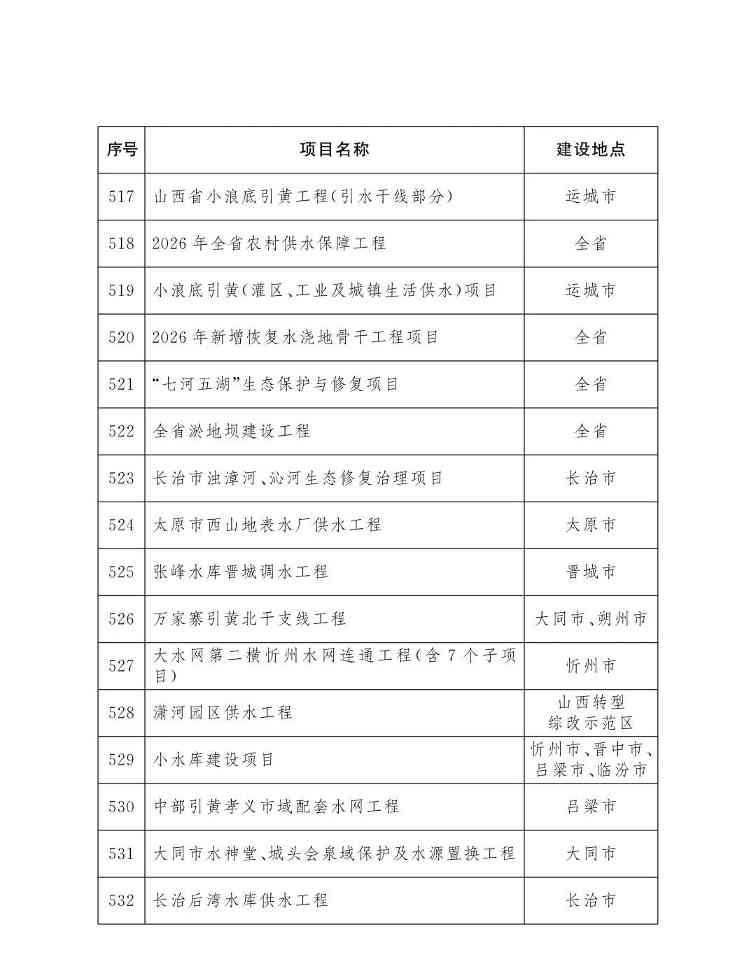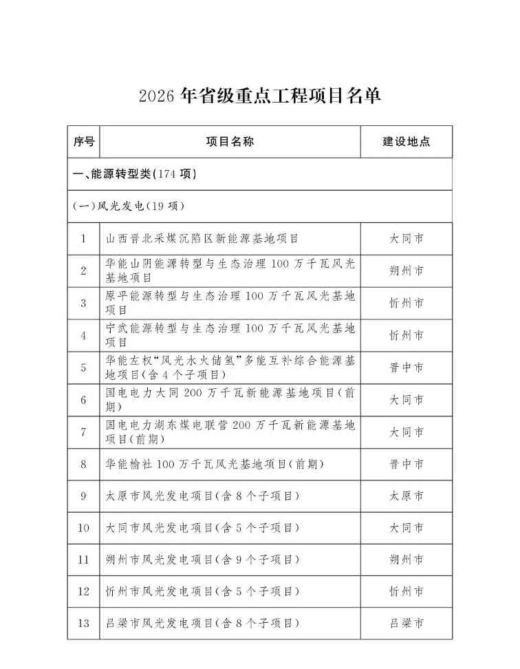 山西省人民政府办公厅关于印发2026年省级重点工程项目名单的通知