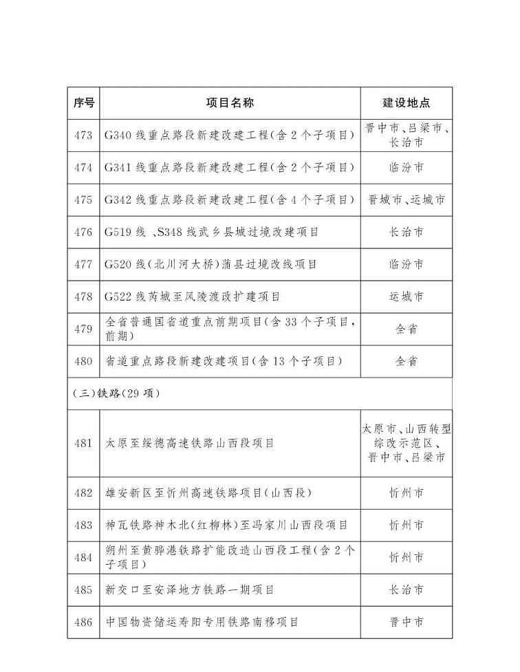 2026年省级重点工程项目名单已经省政府研究确定,现印发给你们,请按照山西省重点工程项目总指挥部工作要求,强化服务保障,协调落实建设条件,做实项目调度推进,确保项目顺利实施。项目建设中确需占用耕地的,要严格落实占补平衡和进出平衡。省级重点工程项目实行动态管理,可根据工作需要和项目实施情况,按程序进行调整补充。