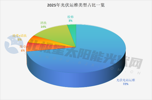 北极星太阳能光伏网梳理发现,超72%为光伏电站日常维检,组件清洗服务14%,除草约6%,除草+清洗5%、电站检修占3%。值得注意的是,集中式电站、分布式电站运维,对清扫机器人的需求量逐渐加大,已有华能集团、国家电投、京能集团、大唐集团、中国能建、中国石油、广西投资集团、皖北煤电、中国电信、中国石油、三峡集团、中国电建12家企业有采购要求。
