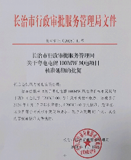 1月12日,山西长治市行政审批服务管理局发布《关于粤电屯留100MW风电项目核准延期的批复》。